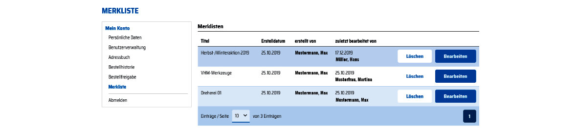 Merklisten anlegen, bearbeiten und löschen